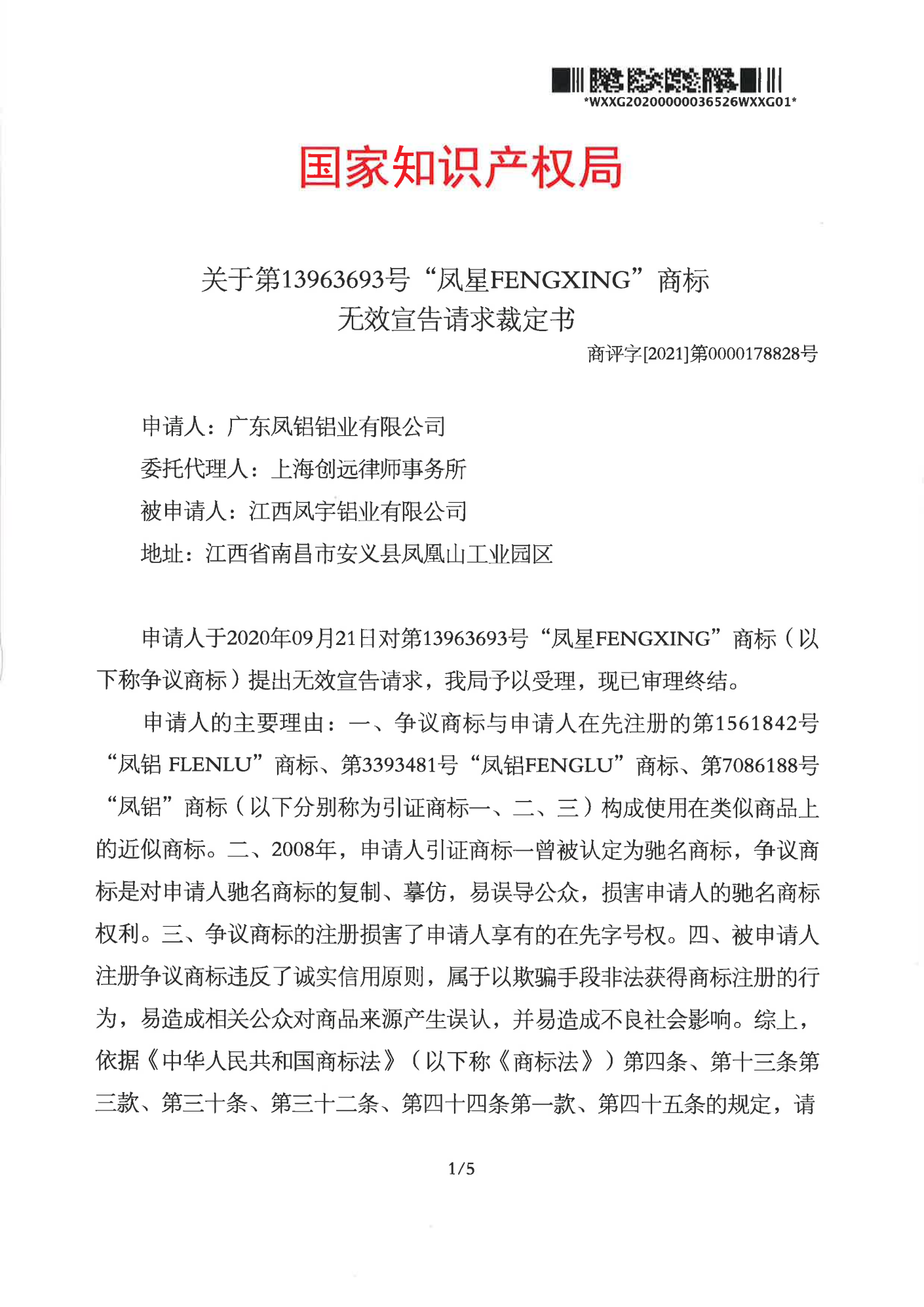 浙江辉知队 | 国家知识产权局:“凤星”商标无效